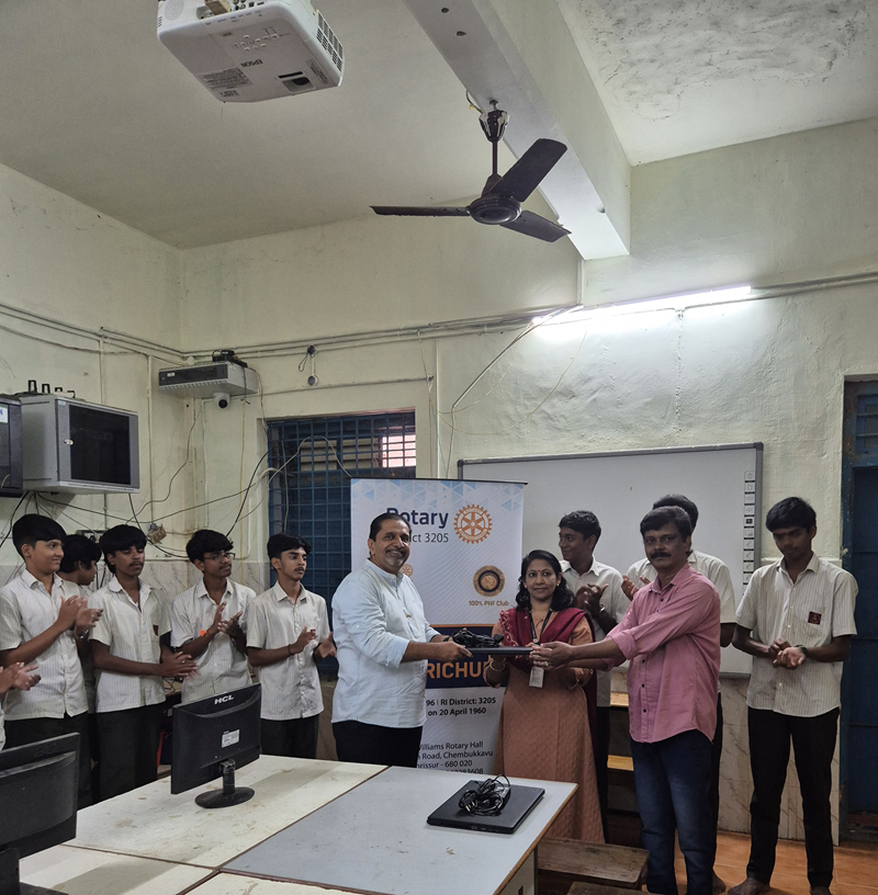 Rotary Club of Trichur successfully completed a meaningful service project by handing over a cheque of Rs. 26,000/- to the Headmistress of GVHSS, Ramavarmapuram. This amount will go towards academic support (scholarships) for 13 needy and deserving students (orphans and children of destitute parents), helping them continue their education without financial hardship.