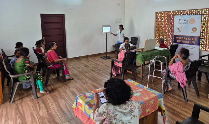 Rotary Club of Trichur successfully conducted an Eye Test Camp at Kasturba Old Age Home, Nedupuzha, for the inmates as well as local residents. The camp was organized by the team from Rani Menon Eye Hospital, and around 50 people attended the camp. Based on the test results, Rotary Club of Trichur will be providing required financial support for the purchase of spectacles and cataract surgeries.